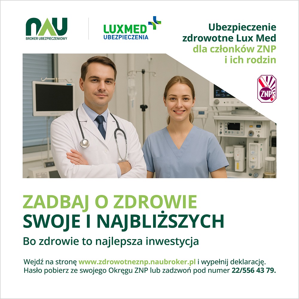 Z ofertą ubezpieczenia zdrowotnego Lux Med dla członków ZNP i ich Rodzin można zapoznać się na stronie dedykowanej dla ZNP www.zdrowotneznp.naubroker.pl