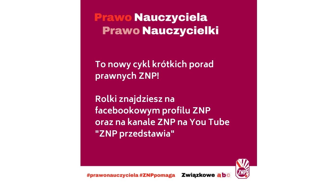Prawo Nauczycielki, Prawo Nauczyciela – to nowy cykl krótkich porad prawnych ZNP, które znajdziesz na facebookowym profilu ZNP oraz na kanale ZNP na You Tube „ZNP przedstawia”.